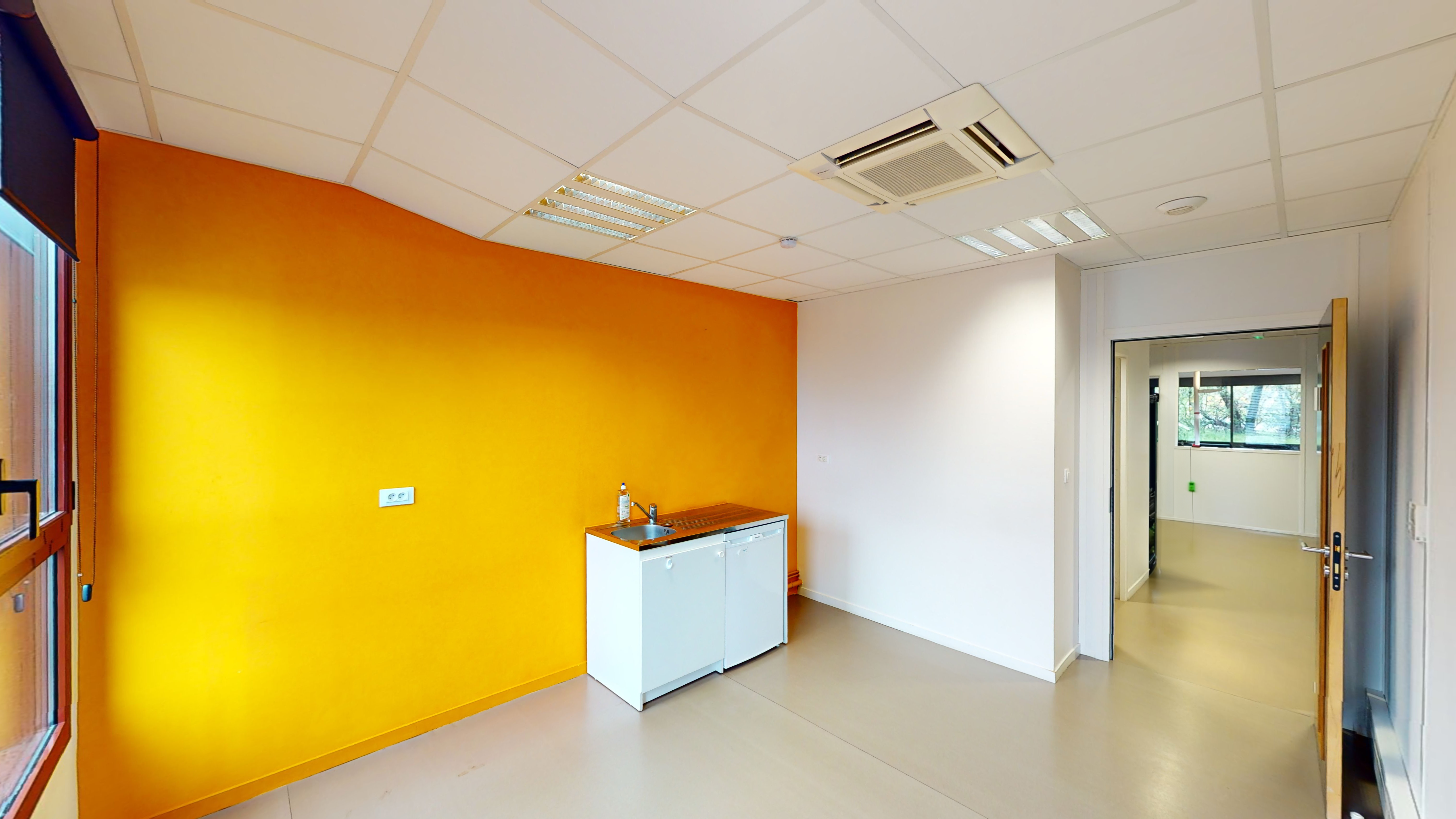 Il se trouve en bon état général et se compose d’une entrée, d’une salle de pause équipée d’une kitchenette, de huit bureaux, d’un dégagement, d’une salle informatique climatisée et munie d’une baie de brassage, d’une salle d’eau équipée d’une douche, d’une salle de réunion, et d’un espace reprographie.
