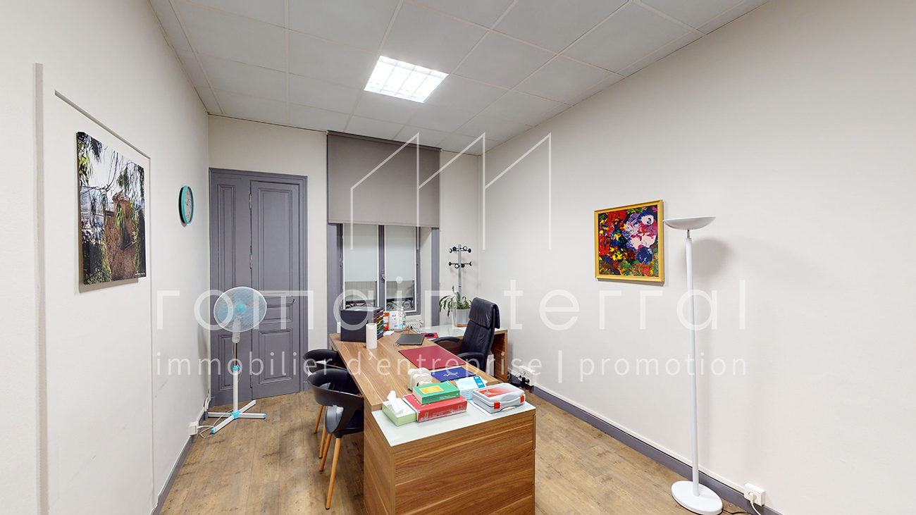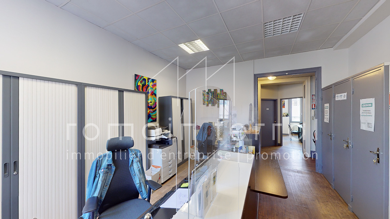 En rez-de-chaussée d’un immeuble en copropriété ; il se compose d’un accueil, d’une salle d’attente, d’une dizaine de bureaux, d’une salle de réunion, d’un local informatique, trois sanitaires, constituant un ensemble de 14 pièces principales.